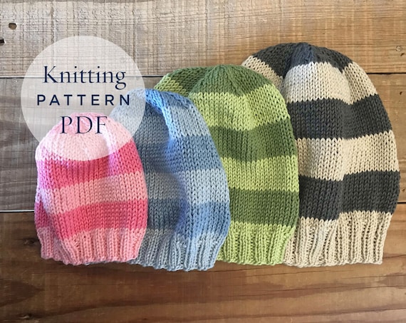 Cotton Stripe Hat Knitting Pattern Ready For Immediate Etsy
